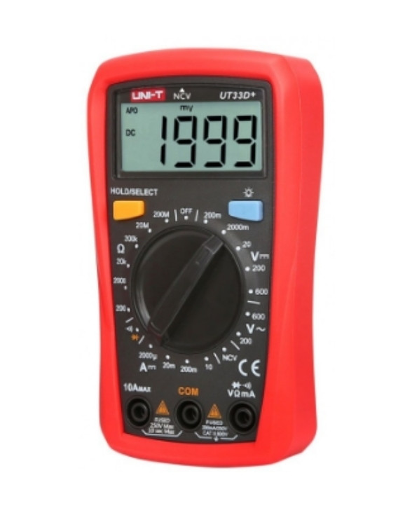 Технічна характеристика мультиметра: * Змінна напруга: | Діапазон | Роздільна здатність | Точність | | 200 V | 0.1 V | ±1.2%±10D | | 500 V | 1 V | ±1.2%±10D | Значення змінної напруги є середнім значенням, каліброваним за середньоквадратичним значенням синусоїдальної хвилі. Діапазон робочих частот: 45 - 450 Гц. Вхідний опір 5Moм для змінної напруги. * Постійна напруга: | Діапазон | Роздільна здатність | Точність | | 200 mV | 100 mkV | ±0.25%±2D | | 2000 mV | 1 mV | ±0.5%±2D | | 20 V | 10 mV | ±0.5%±2D | | 200 V | 0.1 V | ±0.5%±2D | | 500 V | 1 V | ±0.8%±2D | Вхідний опір 10Мом. * Опір: | Діапазон | Роздільна здатність | Точність | | 200 ом | 0,1 ом | ±0.8%±5D | | 2000 ом | 1ом | ±0.8%±2D | | 20 Ком | 10 ом | ±0.8%±2D | | 200 Ком | 100 ом | ±0.8%±2D | | 20 Mом | 10 Ком | ±1%±5D | | 200 Mом | 100 Ком | ±5%±10D | Напруга холостого ходу приблизно 2,8 В. * Постійний струм: | Діапазон | Роздільна здатність | Точність | | 200 мкА | 100 нА | ±1%±2D | | 2000 мкА | 1 мкА | ±1%±2D | | 20 мА | 10 мкА | ±1%±2D | | 200 мА | 100 мкА | ±1.2%±2D | | 10 А | 10 мА | ±2%±5D | Захист від перевантаження: запобіжник 200 мА/250 В. Падіння напруги під час вимірювання: 200 мВ. D-единиця молодшого розряду. * Діодний тест. * Звуковий продзвінок з'єднання. * Генератор прямих форм частотою 50 Гц. * Підсвітка дисплея. * Фіксація результату вимірювання. |